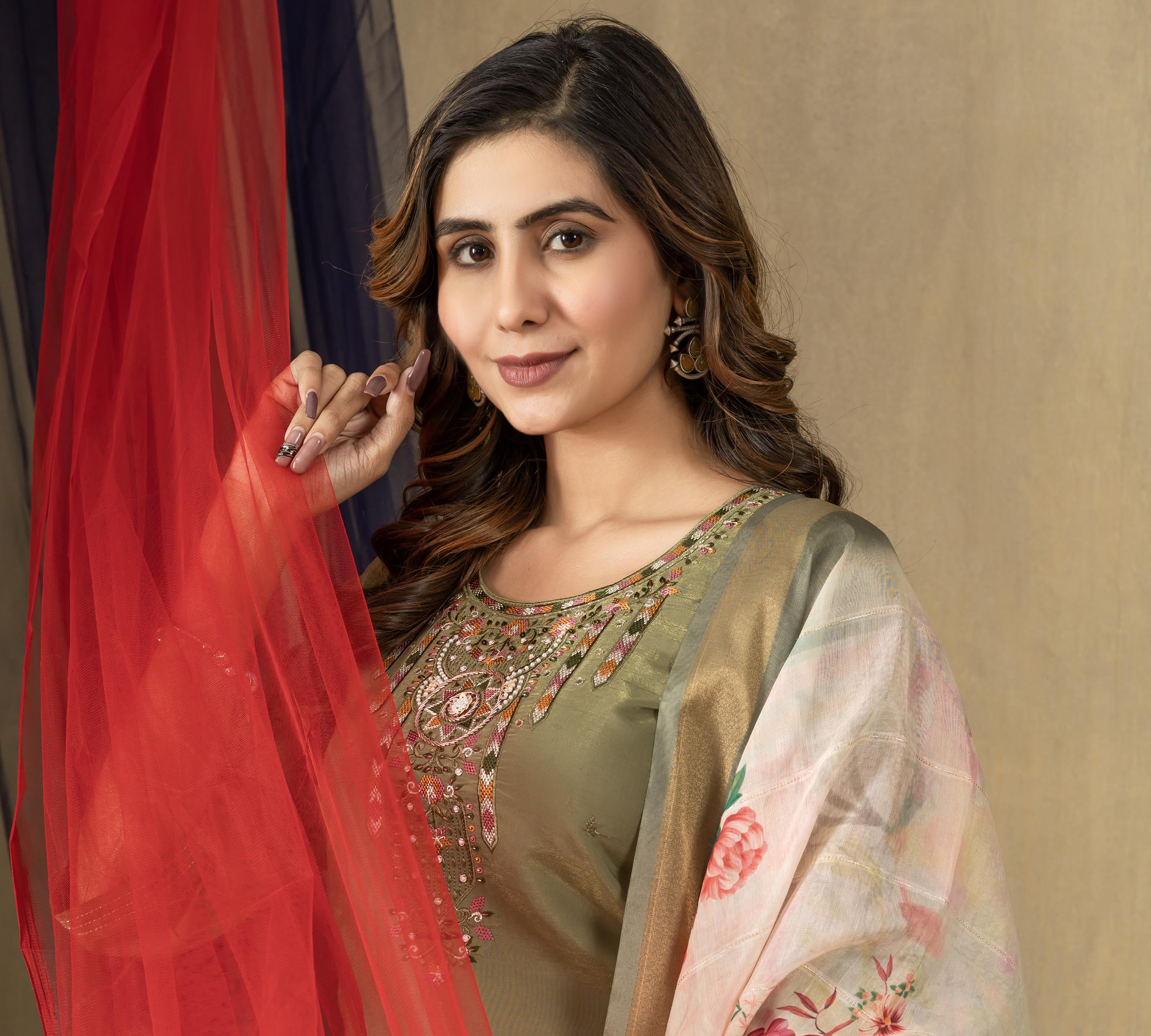 • Blouse: 0.8 meters matching unstitched fabric included for customized tailoring