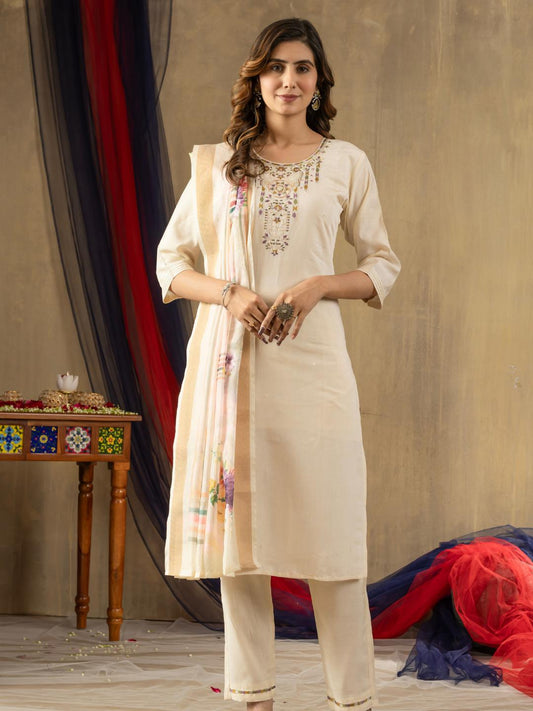 Regular price ₹1,999.00Regular priceUnit price / per₹3,499.00Sale price ₹1,999.00This stylish and trendy Straight Kurti Pant Dupatta Set is sure to upgrade your ethnic wardrobe! This set is comfortable and versatile, and the ideal choice for weddings, parties, or any occasion. You will love the comfort of this Soft Viscose Silk fabric with the fancy and delicate embroidery style, with a digitally printed Dupatta that keeps traditional and modern elegance together!.