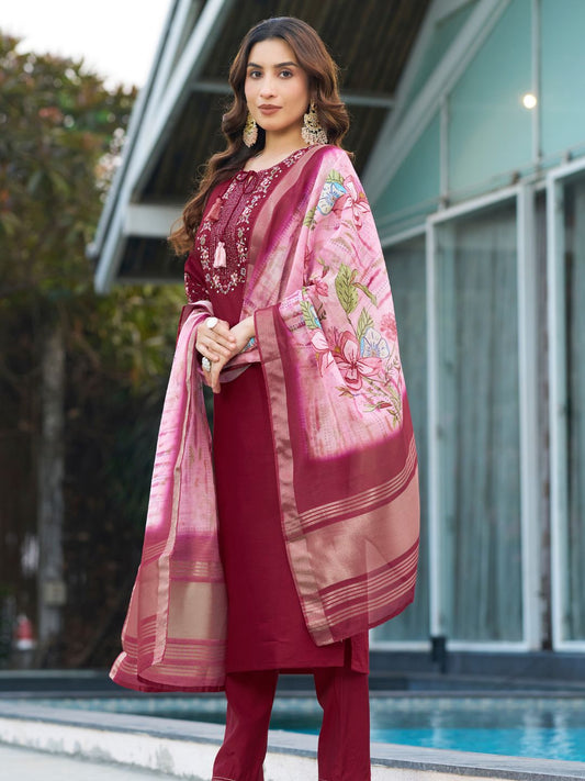 Graceful Viscose Silk Kurti Pant Dupatta Set