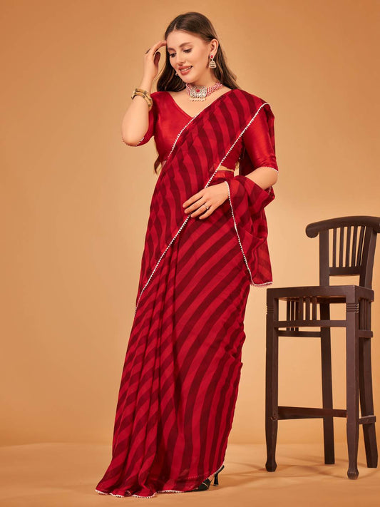No reviewsRegular price ₹799.00Regular priceUnit price / per₹1,599.00Sale price ₹799.00Show off your style with our lovely Ready-to-Wear Saree. This lightweight Georgette/Chiffon saree has a gorgeous and a Lehariya pattern, and compliments any body type. As an everyday outfit for festive occasions, casual activities, or any special event — it provides endless style, comfort, and grace.